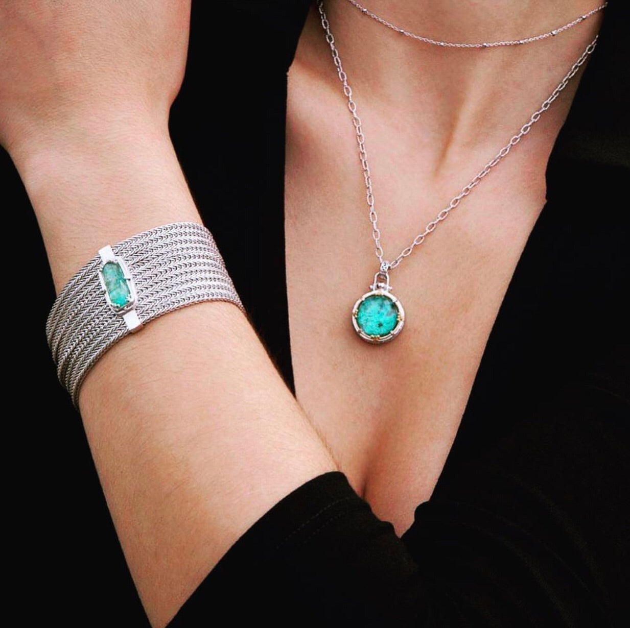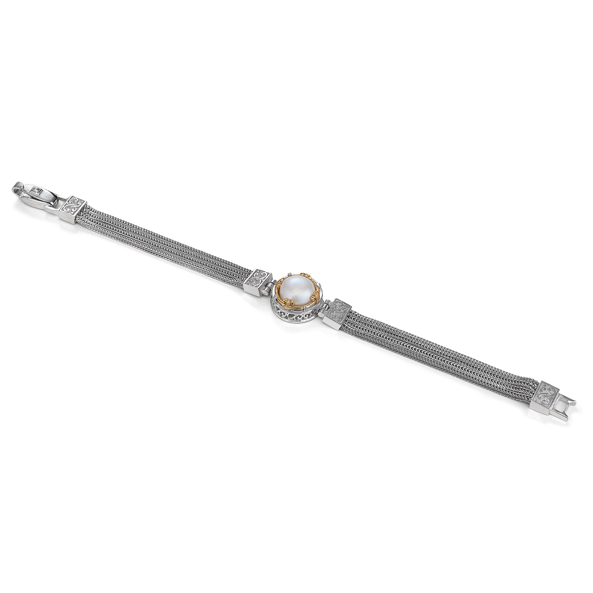 Anatoli jewelry is handcrafted in sterling silver and karat gold utilizing both ancient and modern techniques. Handmade chain, exquisite detail, and intricate weaves in metal are complemented by Akoya, Tahitian and freshwater pearls as well as a variety of semi-precious stones and diamond accents.