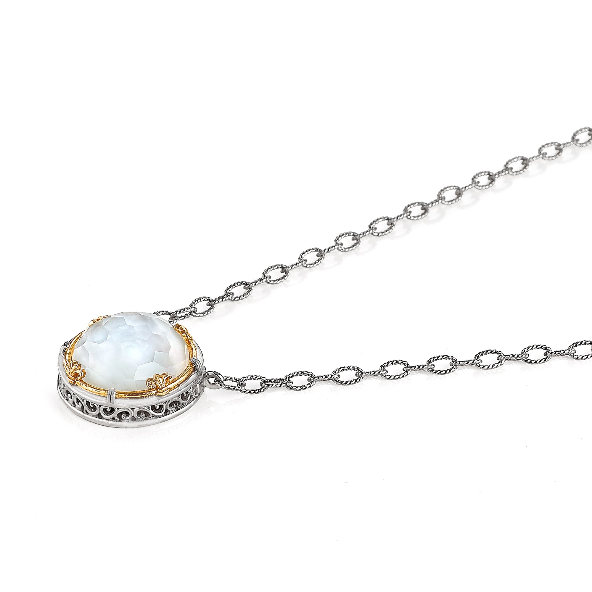 Anatoli jewelry is handcrafted in sterling silver and karat gold utilizing both ancient and modern techniques. Handmade chain, exquisite detail, and intricate weaves in metal are complemented by Akoya, Tahitian and freshwater pearls as well as a variety of semi-precious stones and diamond accents.