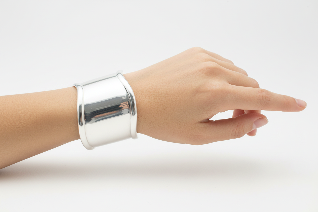 Sterling silver XL curved lined cuff bracelet from Taxco, Mexico.