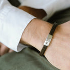 This braided leather bracelet embodies unwavering strength and reliability. Featuring a branded metal clasp, it ensures a secure and comfortable fit around the wrist. This slim, elegantly braided bracelet is the quintessential stylish leather accessory.