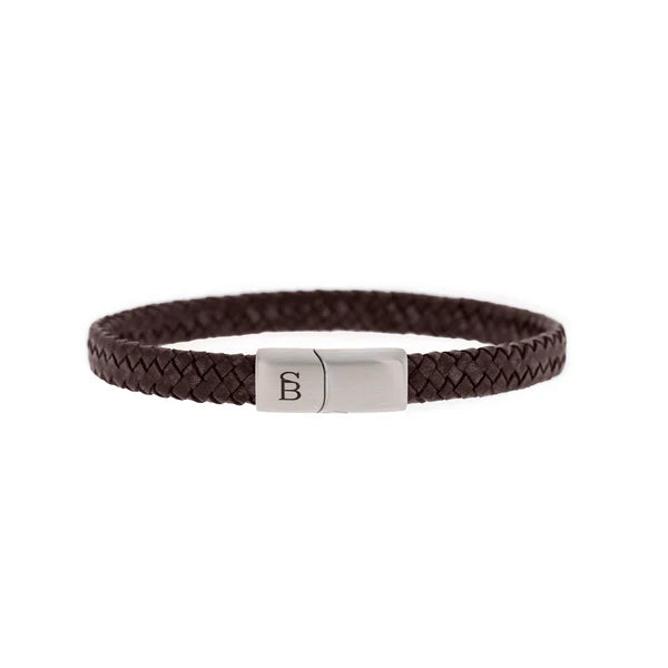 SB LBR-004M RILEY STAINLESS STEEL AND LEATHER BROWN BRACELET