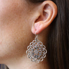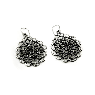 MM M1-1144 15 OXIDIZED SPIRAL FLOWER DROP EARRINGS