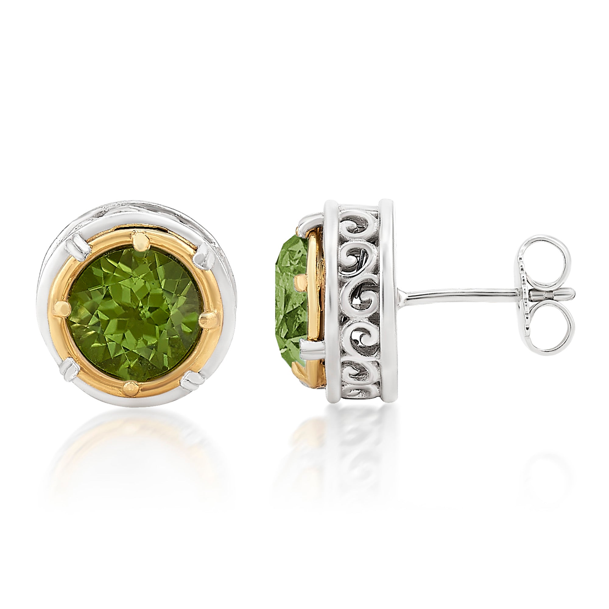AT 808CTP-PD SM GOLD/SILVER ROUND PERIDOT STUD EARRINGS