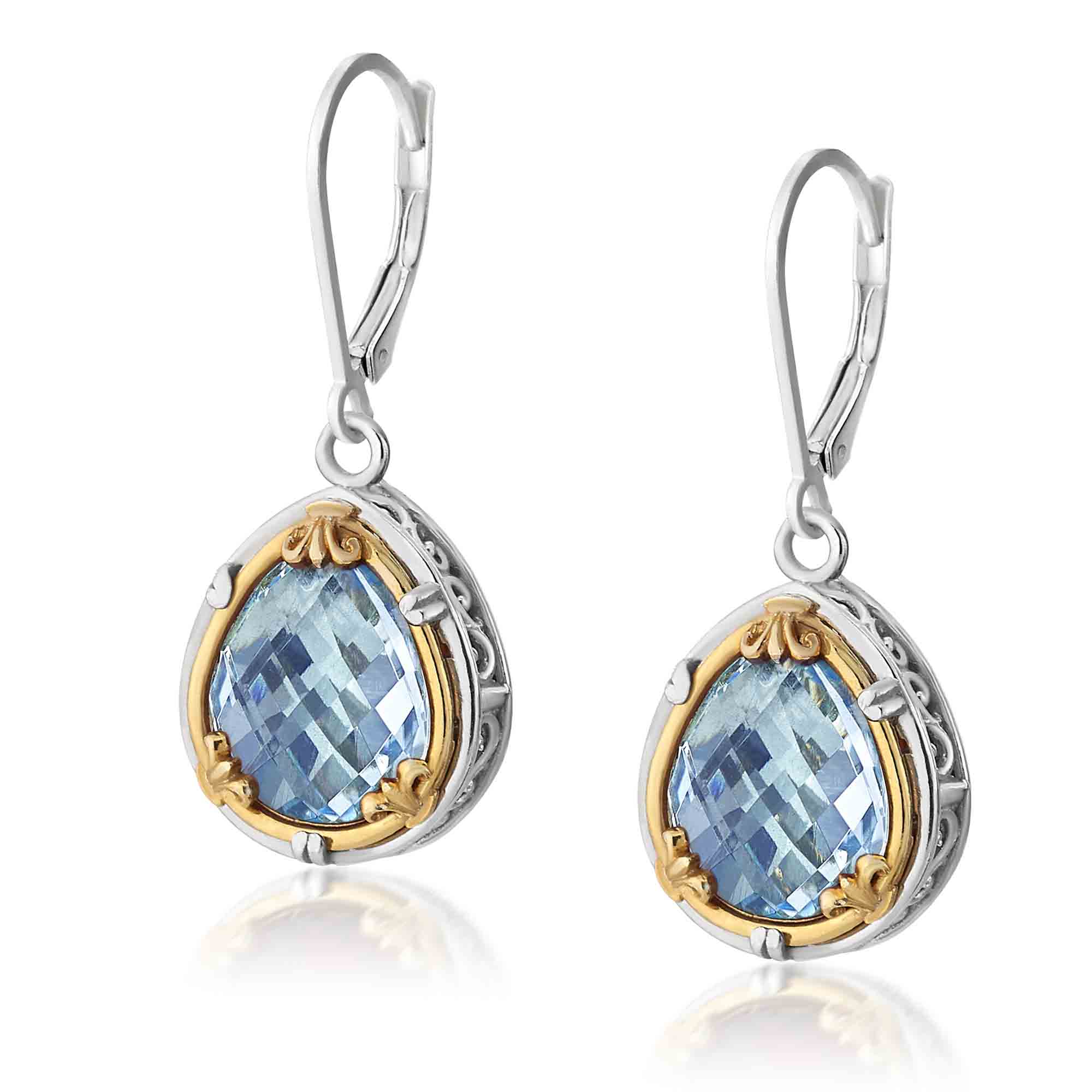 AT 826CT-B GOLD/SILVER TEARDROP BLUE TOPAZ EARRINGS