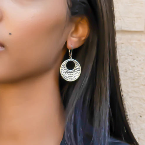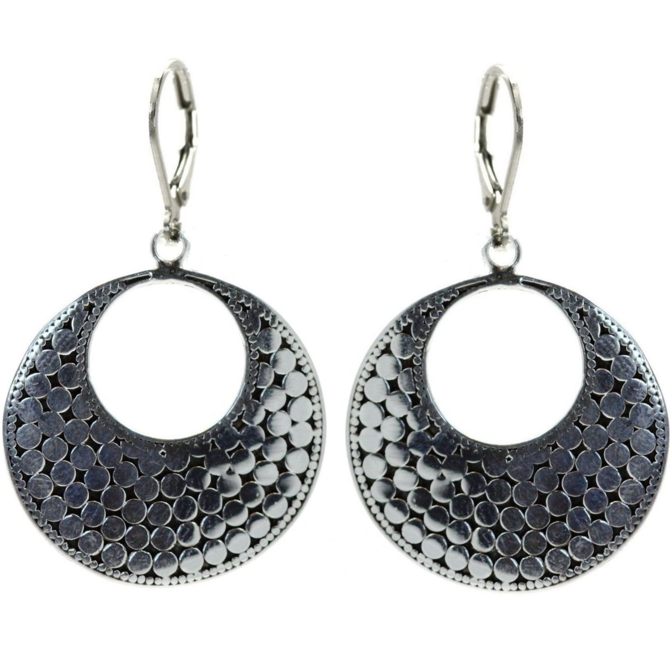 Sterling silver dotted open circle dangle earrings