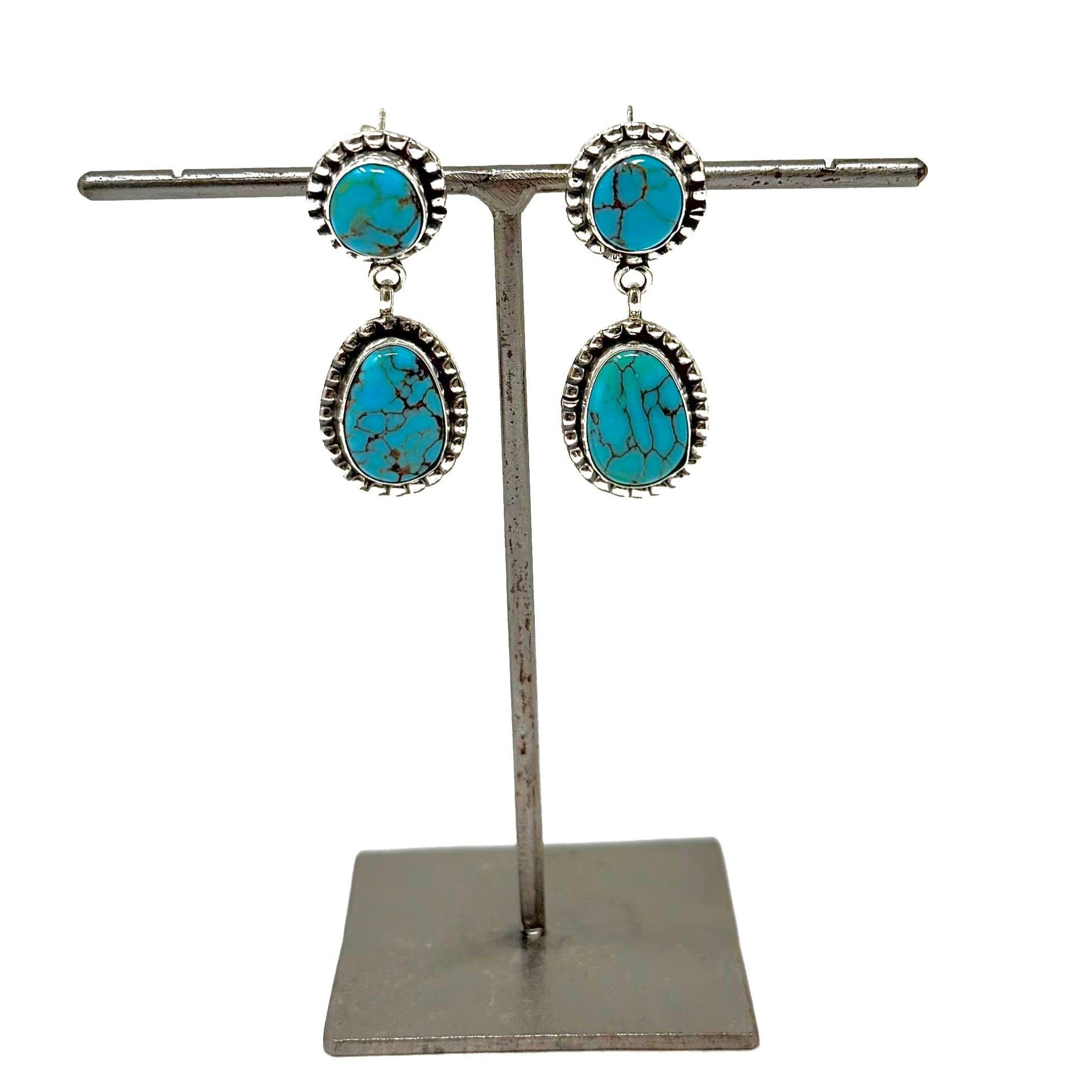 Elevate your everyday look with the captivating beauty of our SW Turquoise Dangle Earrings. Crafted from genuine turquoise gemstones and set in polished sterling silver, these earrings exude a timeless Southwestern charm. The vibrant blue-green stones bring a pop of color reminiscent of desert skies, while the elegant dangle design adds graceful movement with every turn. Perfect for both casual outfits and boho-chic ensembles, these earrings celebrate artisanal craftsmanship and natural beauty in one stunning pair.
