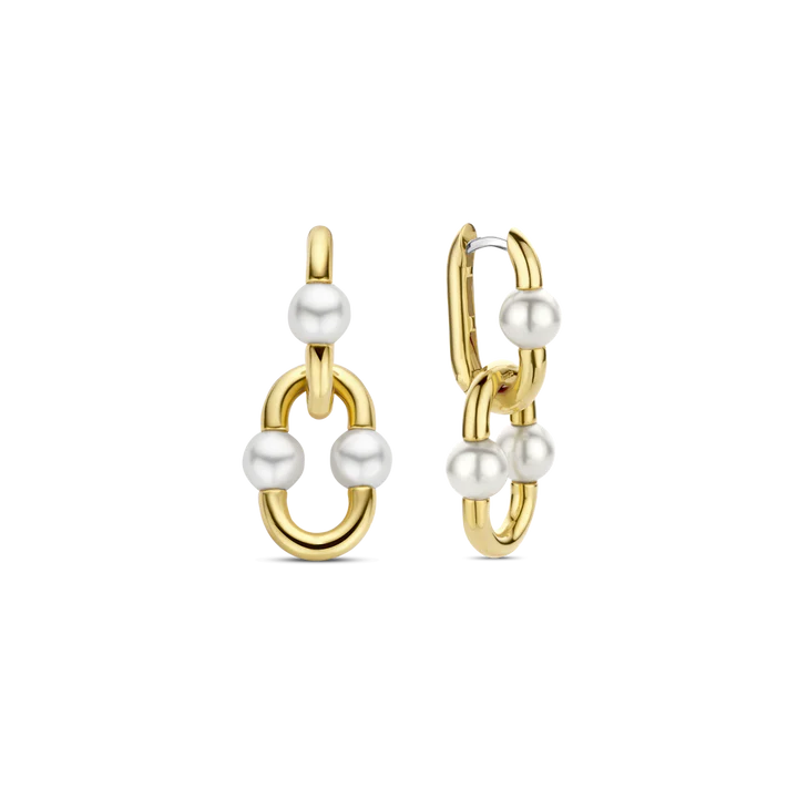 These TI SENTO gold-plated link earrings flaunt signature links decorated with lustrous pearls. Crafted from the highest quality 925 sterling silver, they are then plated with yellow gold. These bold icons are true eye-catchers. When it comes to pearls, you can never overdo it. Decorate your ears with these reinvented vintage classics. These earrings are completely nickel-free and hypoallergenic.