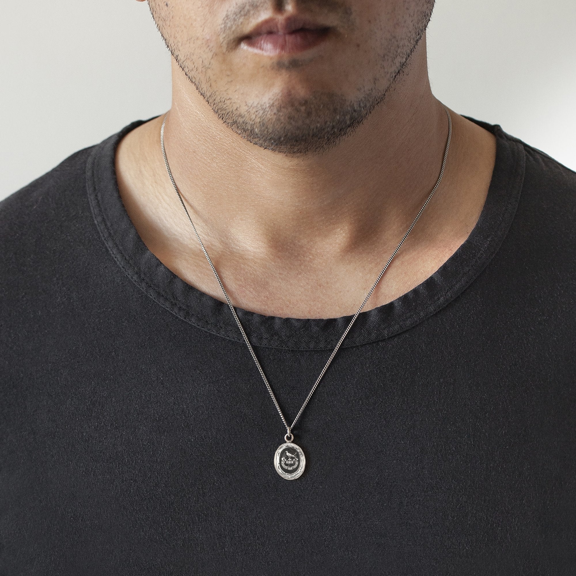 This talisman reads 'Flecti Non Frangi' in Latin, meaning 'To be Bent not Broken'. It refers to one who can endure hardship yet still remain true to themselves. The raven signifies hope and is believed to have keen vision that pierces through all darkness.