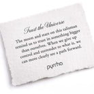 The moon and stars on this talisman remind us to trust in something bigger than ourselves. When we give up control and surrender to what is, we can more clearly see a path forward.