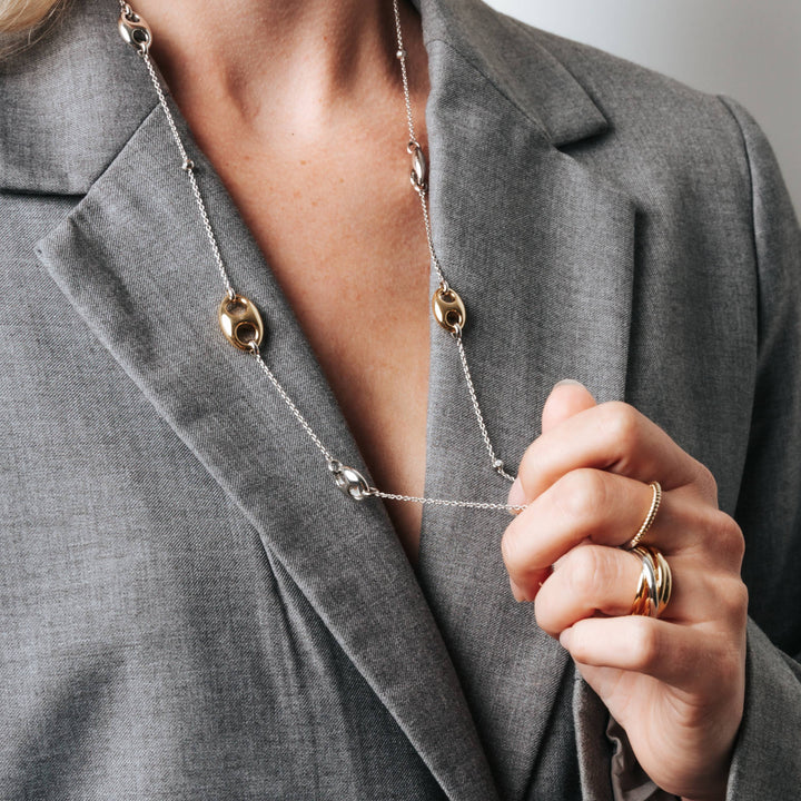 This TI SENTO gold-plated ring 12056SY is a captivating blend of sophistication and glamour. It showcases fine intertwined bands featuring a harmonious mix of premium silver and radiant yellow gold-plating. Crafted from premium 925 sterling silver, it is plated with platinum in order to protect it from daily wear and keep it luminous. The yellow gold plating exudes a warm radiance that makes this piece a real eye-catcher. Its intertwined design symbolises balance and makes it a perfect statement piece for both day and night. Wear this ring to make a bold statement or stack it with others for a curated and personalised look. Like all our jewellery, this ring is nickel-free and hypoallergenic, ensuring not just style, but also comfort and quality.