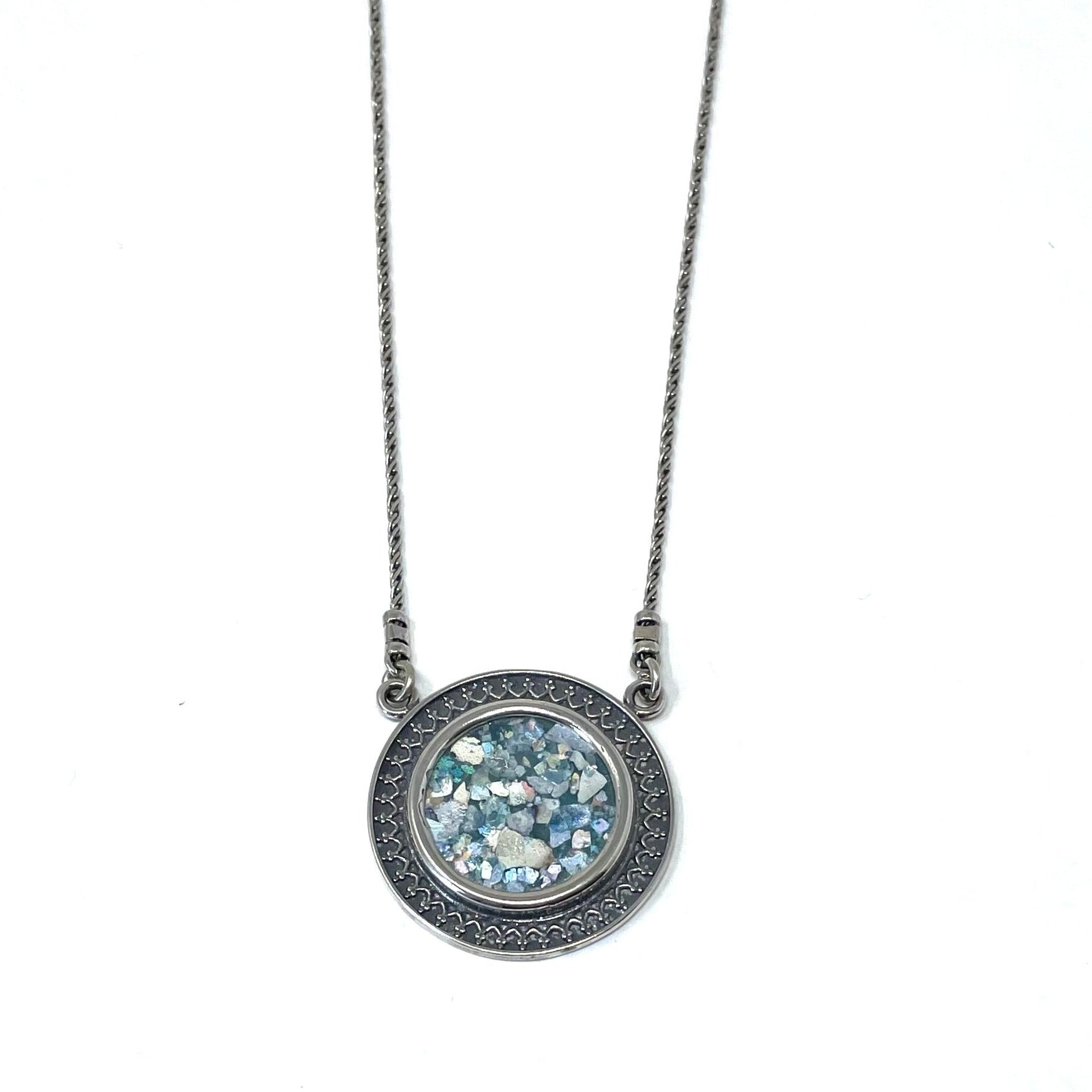Sterling silver and ancient roman glass.