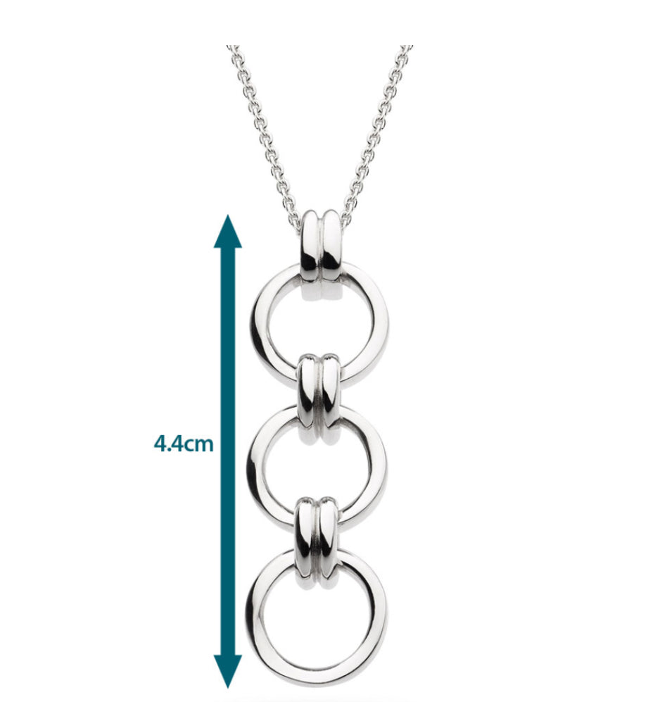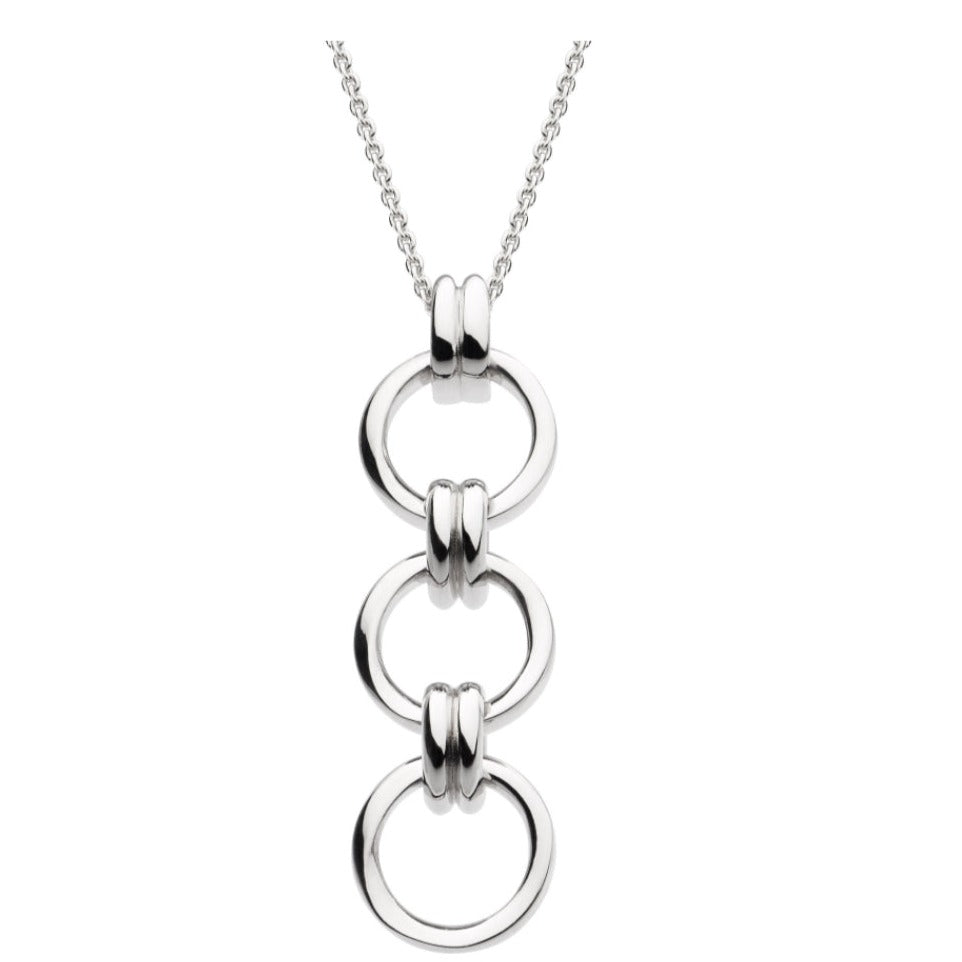 The distinctive Bevel Unity Trio necklace has three sterling silver interconnected movable circles, joined in friendship with smaller bonded duo-curved links. As a modern yet timeless gift, it conveys the symbolic strength of connection, friendship, and oneness.