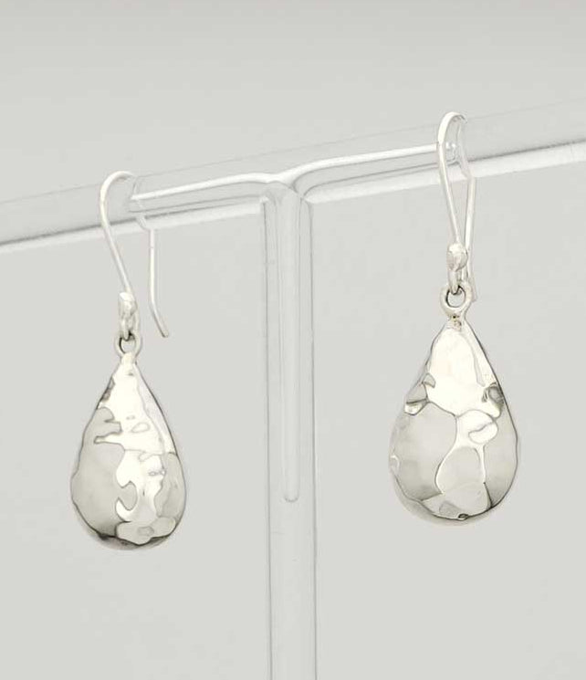 Sterling silver hammered teardrop dangle earrings by Pepe Dominguez.