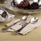 Gently hammered handles emphasize the handmade quality of the versatile Beatriz Ball SOHO metal salad servers.