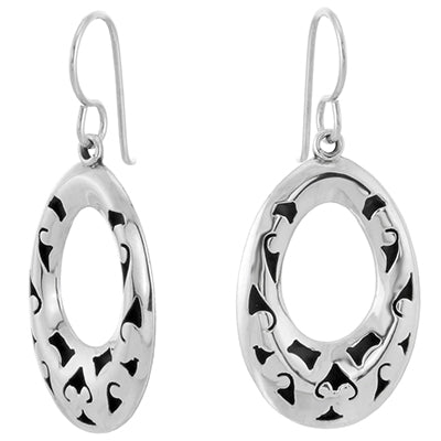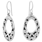 Sterling silver 925 etched oxidized oval dangle earrings.